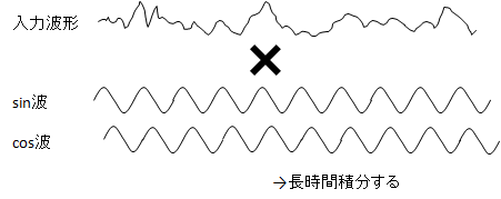 ノイズに埋もれた微弱な信号でも、その信号がある周波数に同期していれば、sin cosと乗算して長時間積分することで、ノイズ成分は打消しあるため、元の信号を復元することができます。