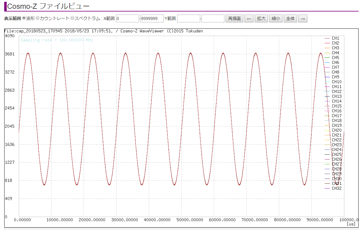 例1 100MHzで、100Hzの正弦波を1000万ポイントの長さ計測した例
