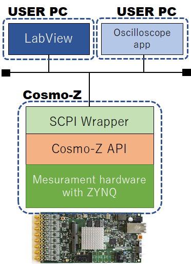 Cosmo-Zを、物理計測の分野で世界的に利用されているEPICS(エピックス)やRT MiddleWareと、オシロスコープなどで利用されているSCPI(スキッピ)といったプロトコルに対応させます。