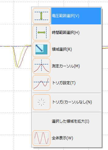 波形表示ウィンドウで右クリックし、横軸、縦軸あるいは領域で範囲選択を行います。