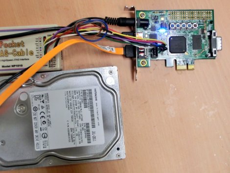 このコアを使うと、Expartan-6Tの横側についているSATAのコネクタに、ハードディスクやSSDを接続し、FPGAのロジックからアクセスすることができるようになります。