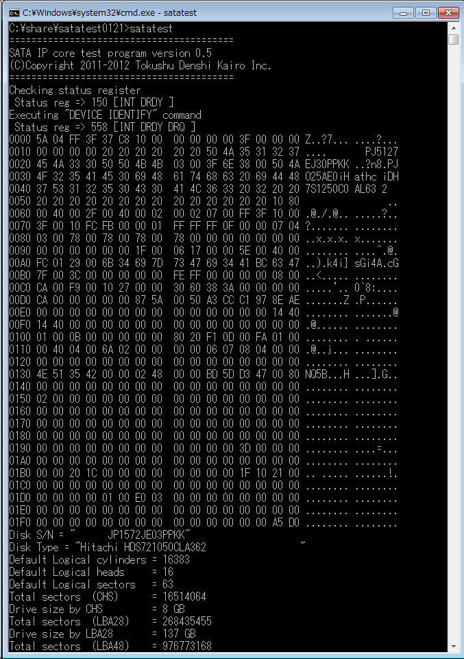 図2 Windows用DOSプロンプト版 SATAデバッグツール