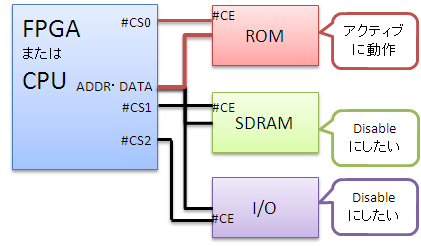 なお、CPUやFPGAのデータバスに、フラッシュROM以外にRAMやI/Oチップが接続されている場合、これらのデバイスはフラッシュROMの読み書き中にディぜーブルにしておかなければなりません。