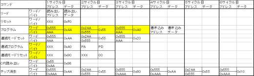 表6 Spansion系のフラッシュROMコマンドの例