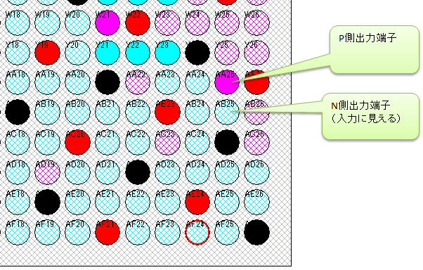 LVDSの出力に設定された端子は、バウンダリスキャンではP側のみ操作でき、N側は入力であるように見えてしまいます。