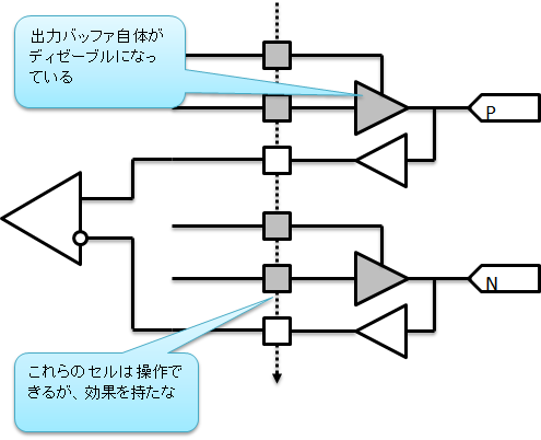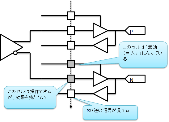 (2) 入力専用にした端子は出力セルが操作できない