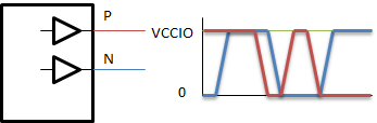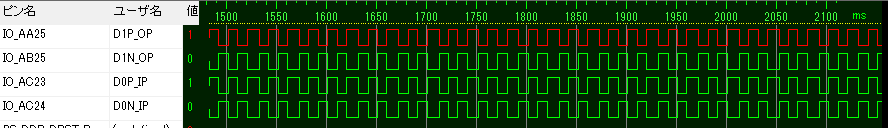 FPGAをコンフィグしてしまうと、N側が自由に動かせません。FPGAをコンフィグしなければP側もN側も自由に動かせますが、電圧規格がLVDSになりません。