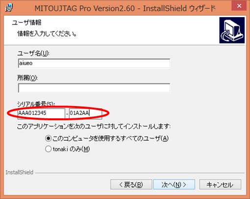 ⑤CD-ROMに同封のシリアル番号を入力し、「次へ」をクリック。
