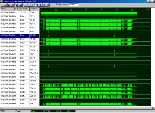 さて、UCFファイルを読み込んだら、ターゲットマシンを再起動し、MITOUJTAGのロジックアナライザを起動して、PCIバス上の信号を観察してみましょう。