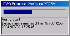 図15はベリファイ中の画面です。ベリファイが完了したら、SUZAKUの電源を一度OFFにし、JP2のジャンパを外してから再度電源をONにしてください。