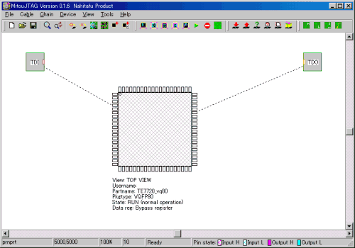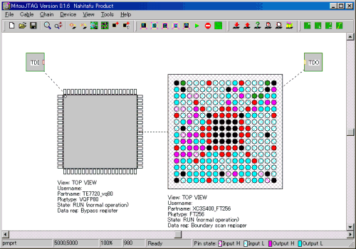 MITOUJTAGは、デバイス書き込み機能だけではなく、デバイスの各ピンの状態をリアルタイムに可視化する強力な機能を備えています。