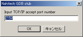 ホスト名は、MITOUJTAGを動作させているPCのIPアドレスを、ポート番号はMITOUJTAGで設定したGDBスタブの待ち受けポート番号(デフォルトで2159)を入力します。MITOUJTAGを実行させているマシン上でGDBを実行させる場合は、ホスト名にはlocalhostと入力します。