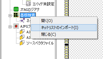 MITOUJTAGの画面左側にあるプロジェクト・ツリーで、「基板検査」を右クリックし、ネットリストのインポートを実行します。