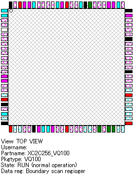 下の図のように、CPLDの端子のH/L、入力/出力の区別を色分けと塗り分けによって表示します。