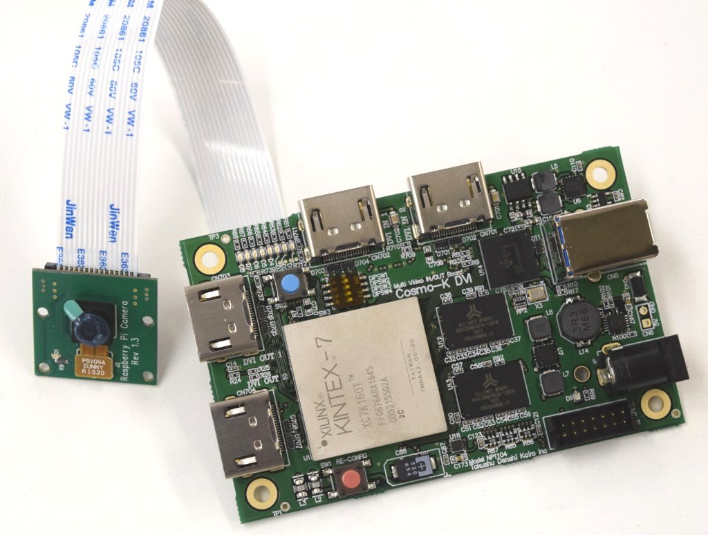 Cosmo-K DVIにRaspberry Piカメラを接続するには、裏面のCSIコネクタを実装して、そこに取り付けます。