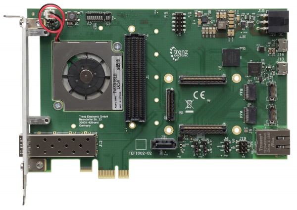 Trenz Electronic TEF1002-02キャリアは、Trenz Electronic 4 x 5 cmSoMのベースボードです。これは、FMCLPCコネクタを提供するPCIex1カードです。TEF1002キャリアボードでサポートされているSoMについては、「4 x 5cmキャリア」ページを参照してください。