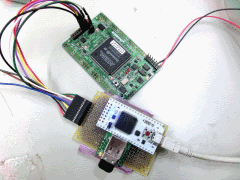 次の例は、RaXino-iをUSB-JTAGアダプタにして、ALTERAのFPGAに書き込みしているところです。このようなUSB-JTAGアダプタを作ることができます。