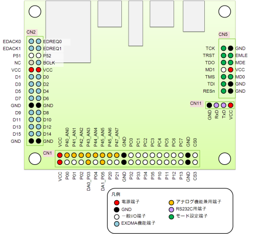 基板ピン配置対応図(TKDN-RX62N-BRD)