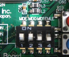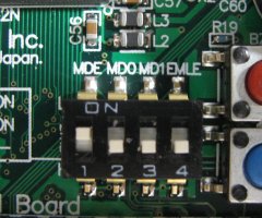 このスイッチにはCPUのMDE、MD0、MD1、EMLE信号が接続されており、をONにするとLレベルになります。