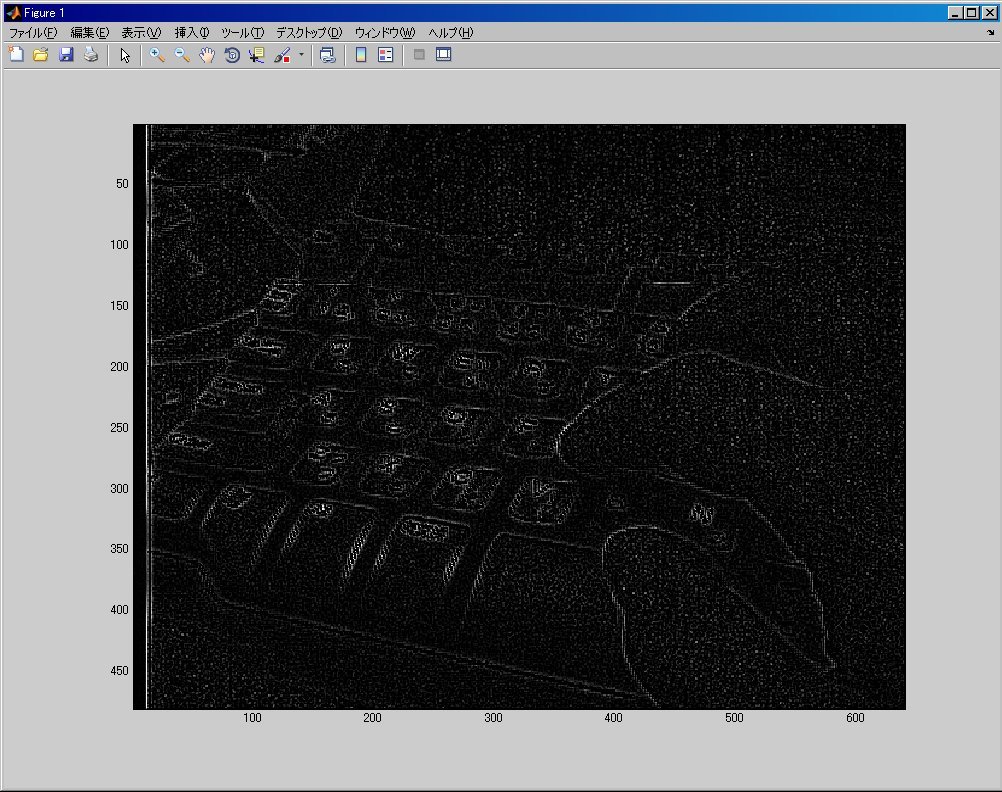 下の画像は、パソコンのキーボードと私の手です。輪郭が抽出されて見えるようになりました。