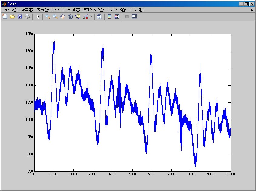 while(1) read_data = zeros(len,1); [read_data,s] = USBReadData16(len,flag); plot(read_data); % 生の波形を表示 pause(0.0001);