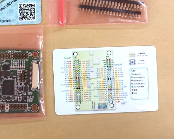 ピン配置を記したカードを見ると、FPGAのどのピンがどこのI/Oにつながるかが一発でわかります。
